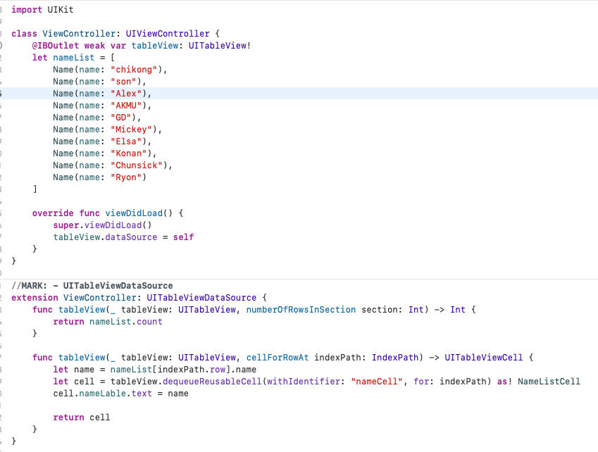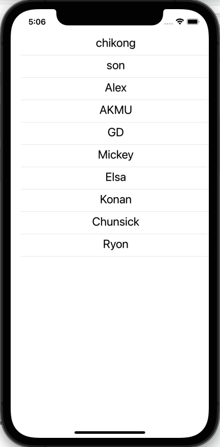 이와 같이 TableView 로 각 이름 값 들을 표시하는걸 볼 수 있다!