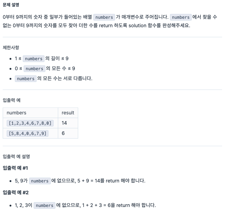 0 ~ 9 까지의 합에서 해당 값을 빼면 된다고 생각했다!
