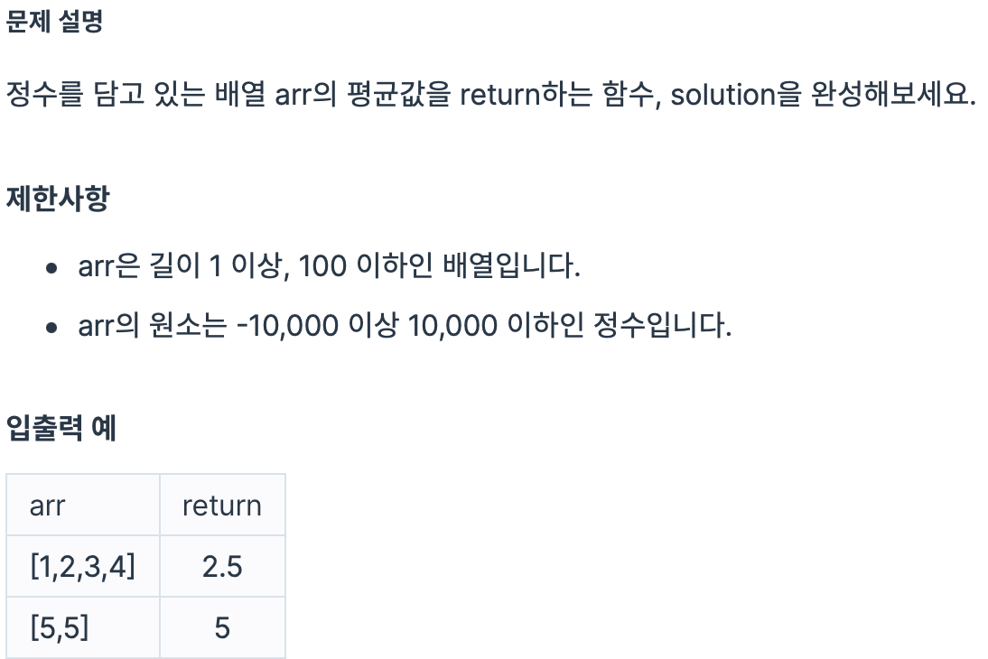 간단하게 reduce 함수를 통하여 배열의 모든 요소를 더하고, 배열의 길이로 나누어 평균값을 return 하였다.