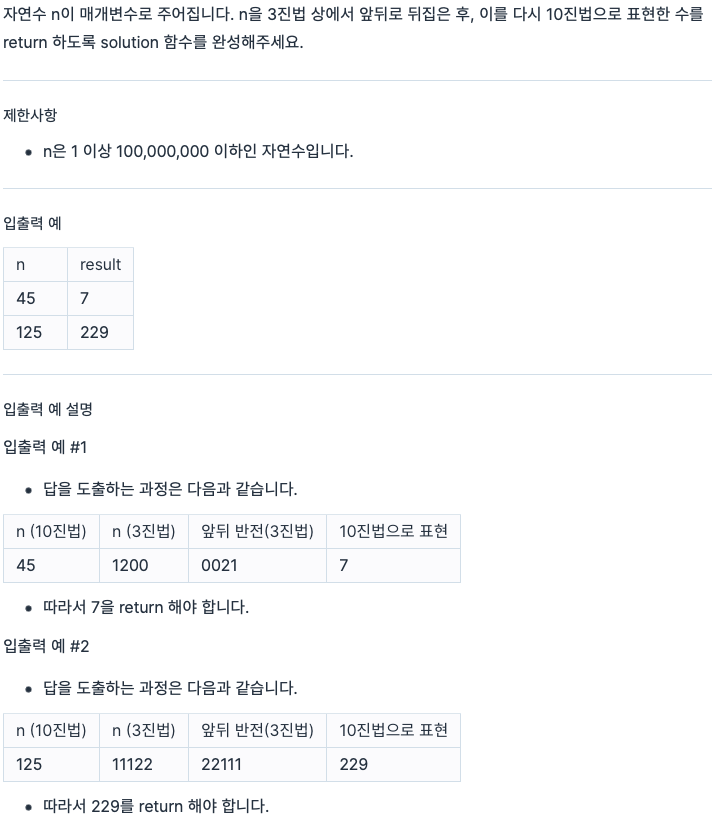 그 아이디어가 생각나서 별도의 함수를 만들고 해당 함수에서 3진법으로 변환하게 하였다!