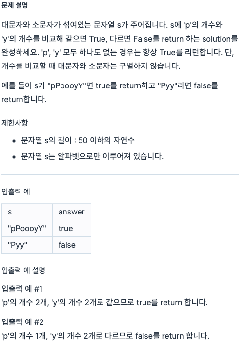 2 번 풀이의 경우 댓글들을 보니 p 나 y 가 아예 없을경우, 오답이 발생한다고 나와있어서 정답은 아닌거 같지만 그럼에도 가져온 이유는