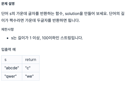정수로 나온다면 해당길이가 짝수이기 때문에 두글자를 반환하도록 했다.