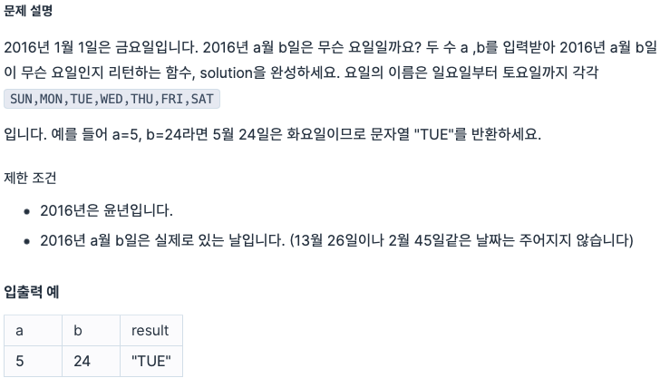 해당 일수를 7로 나누었을때 나머지값에 해당하는 부분이 해당 요일이 되기 때문에