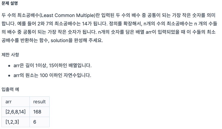 이렇게 하면 N개 수의 최소공배수를 구할수 있다.