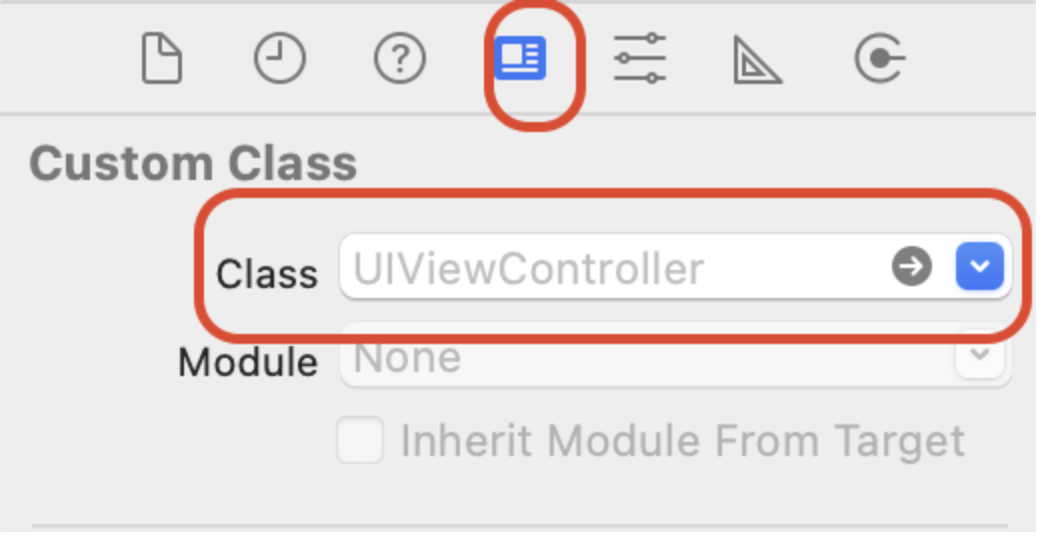 → 인스펙터 창에서 class를 선택하여 지정한 ViewController와 연결한다
