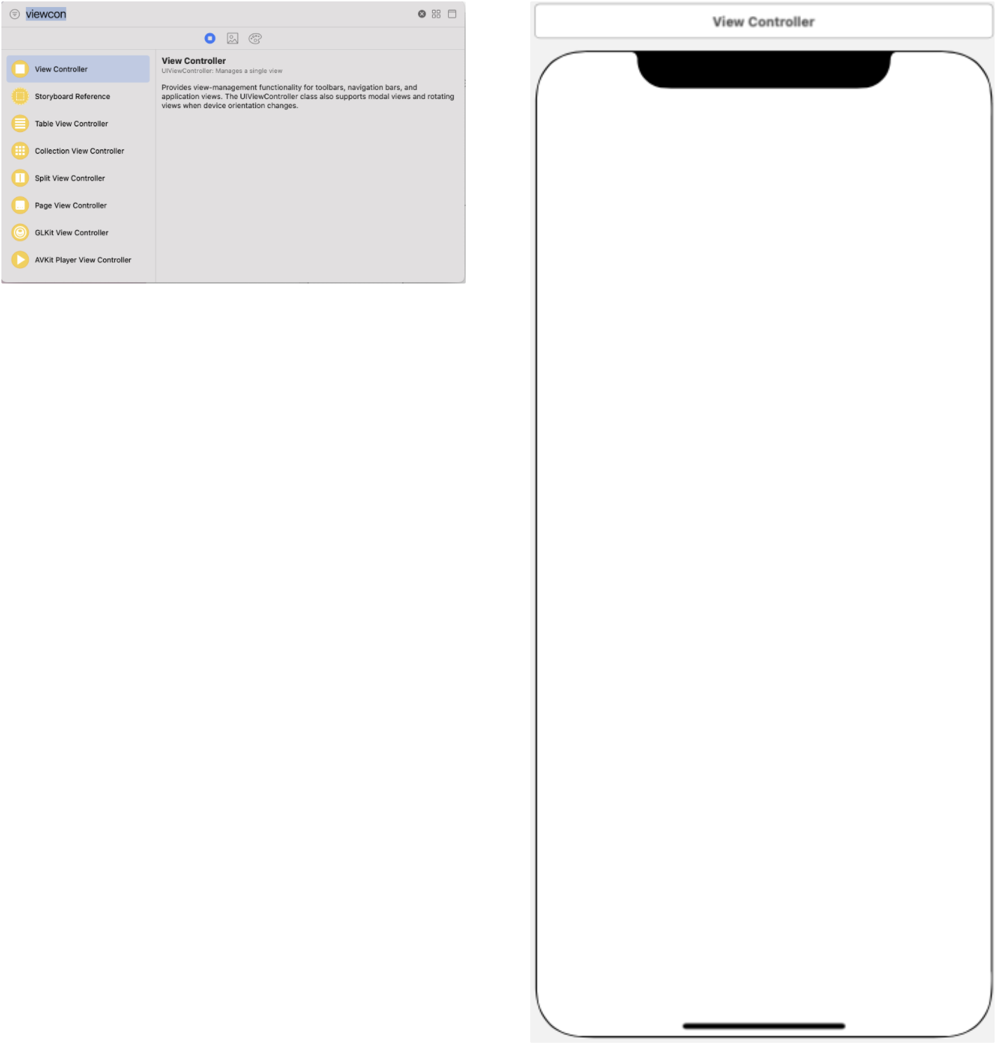4. [ Shift + Command + L ] 단축키를 이용해 컴포넌트 창을 열어 새로 추가할 ViewController를 추가