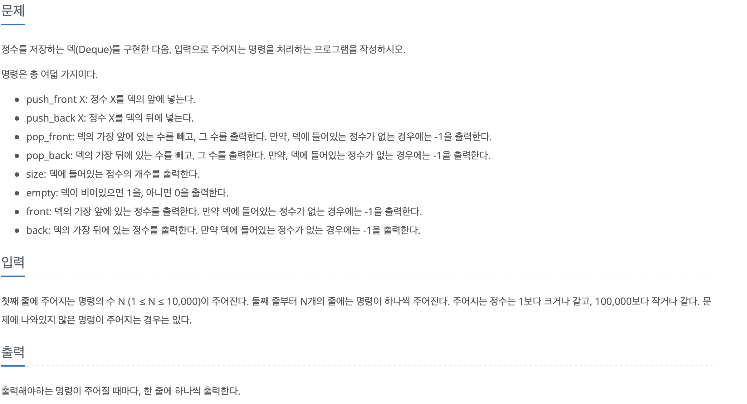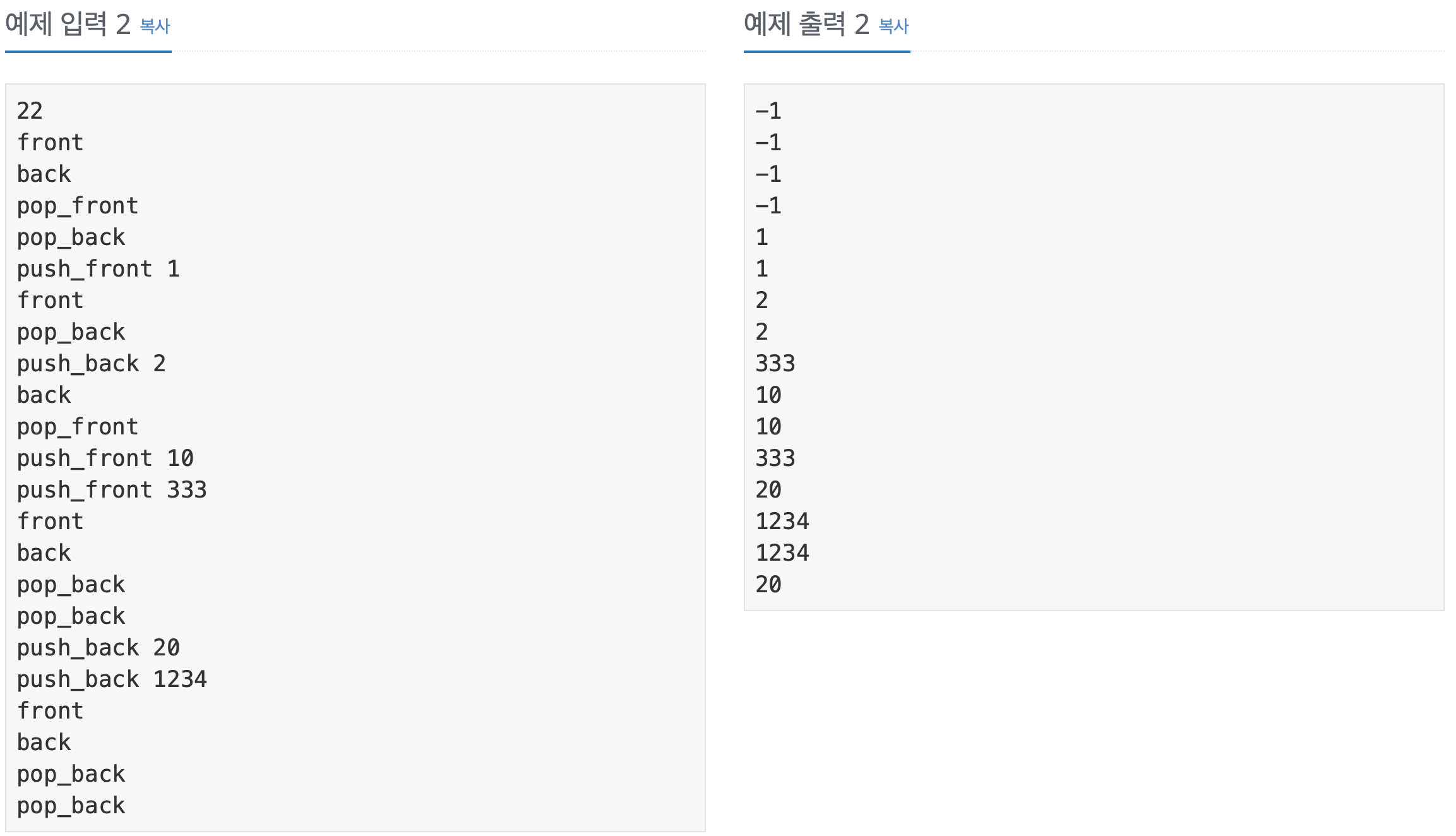 Front 와 Back 을 구분하는것 이외에는 큐 문제와 완전 똑같았다,
