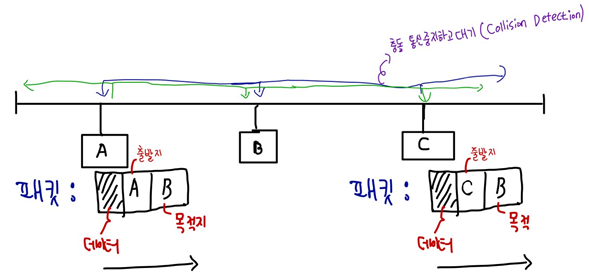 - 충돌이 지속적으로 발생하면 전송 효율이 대폭 떨어지기 때문에 통신 케이블을 세심하게 연결