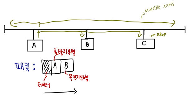 : 전송 방향을 제한하지 않고, 버스에 연결된 모든 노드에게 전부 전기적 신호를 전송