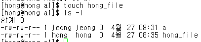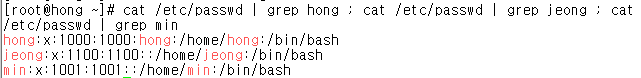 1) hong 계정 ( 서버와 클라이언트 동일 계정명 , UID )