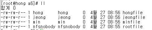 : 일반 사용자는 /home/a1 과 동일하게 적용되며, root 계정은 nobody로 매핑된다.