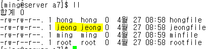 : 서버에는 해당 UID 값이 없기 때문에 클라이언트의 소유자와 그룹명이 UID 값으로 표시된다